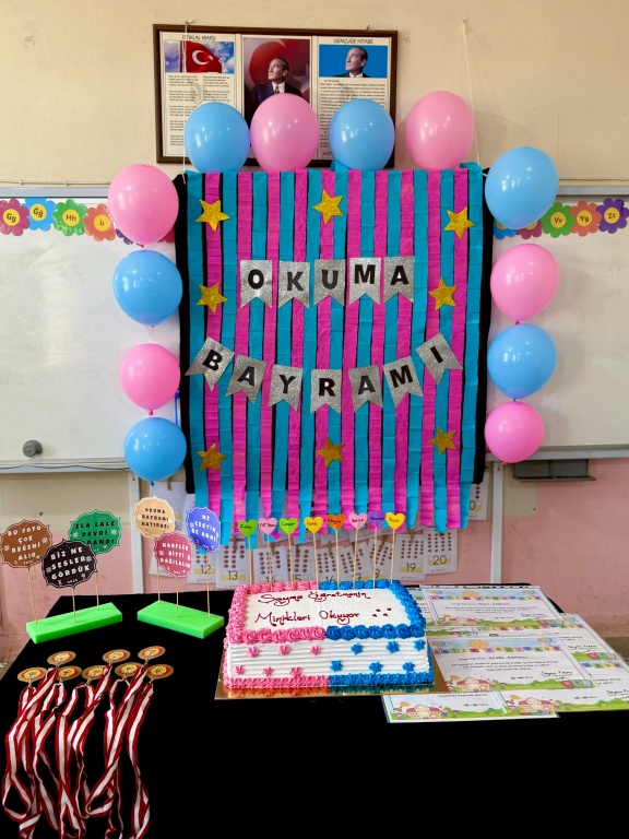 1-A sınıfımızdaki öğrencilerimizle Okuyorum Yazıyorum pastası kestik. Büyük emek harcayarak hem okula uyum gösteren hem de okuma yazma öğrenen öğrencilerimizi tebrik ederiz.